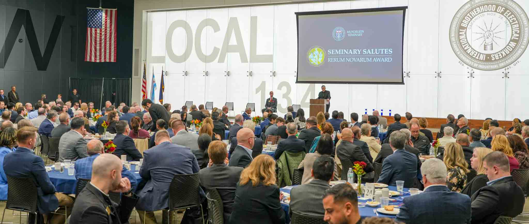 The 33rd Annual Seminary Salutes Rerum Novarum Awards was held at IBEW Local 134 in Chicago and served as a fundraiser to support the formation of seminarians for the Archdiocese of Chicago. The event is centered on the core principles of the 1891 papal encyclical Rerum Novarum: respect for the dignity of human labor, the right to organize, and the right to a living wage.