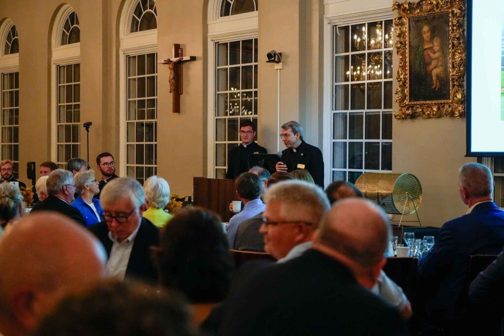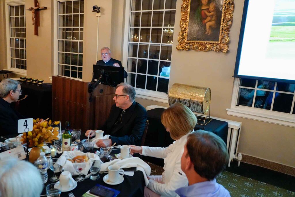 The evening continued at USML’s dining hall, where the spirit of giving was celebrated with cocktails, a silent auction, and a raffle. The program provided a moment to celebrate the collective impact of the community and to acknowledge Fr. Franzman’s lifetime of service.