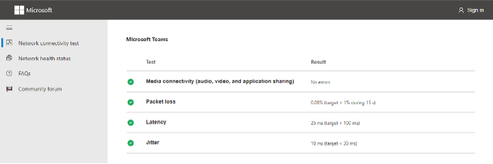 Microsoft Teams Connectivity Test